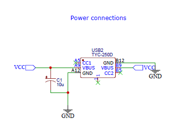 The diagram above show the connections for the type C as power input that will supply the board power with a filter capacitor to smooth out the voltage input.
